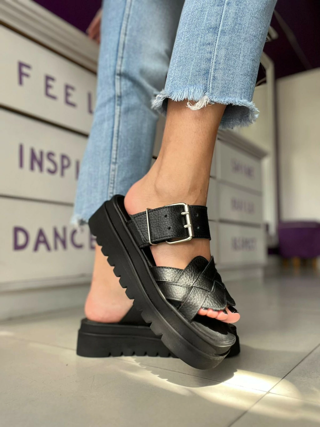 SANDALIA MILA ONDA CUERO URBANO NEGRO