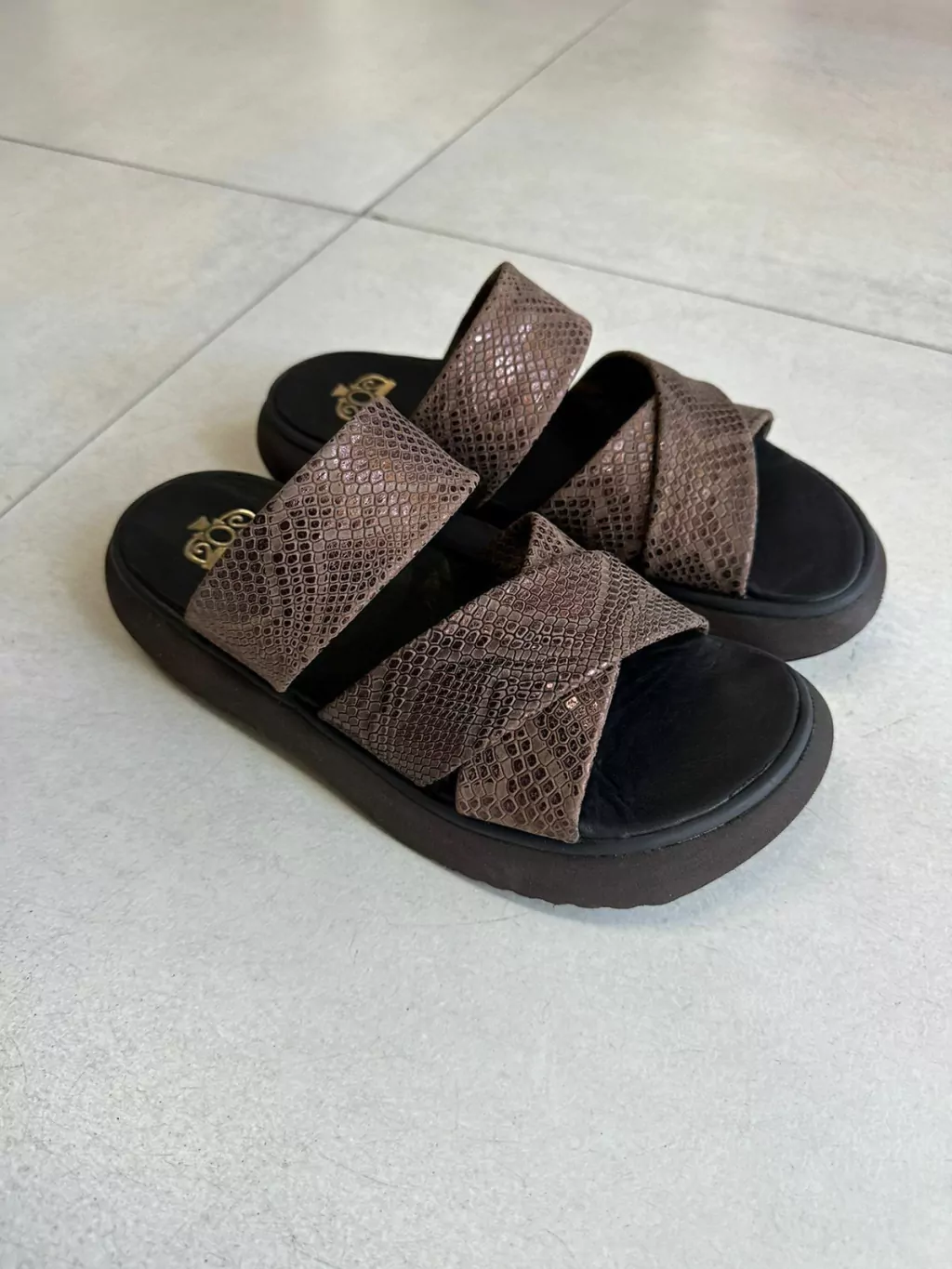 SANDALIA MILA ONDA BAJA CUERO REPTIL COBRE