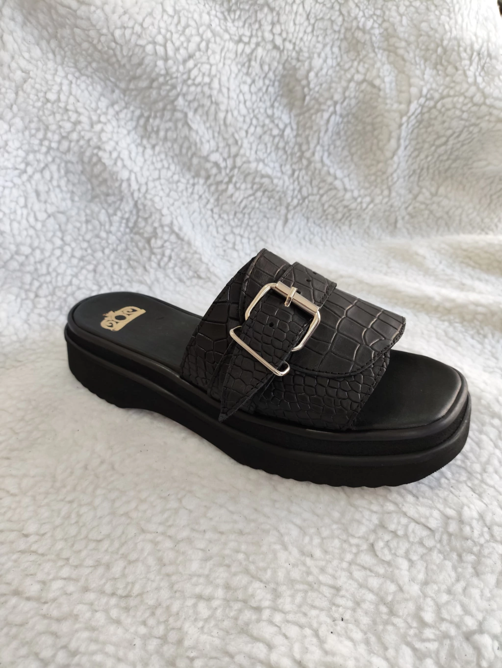 SANDALIA NAOMI FUNK BAJA CUERO CROCO NEGRO
